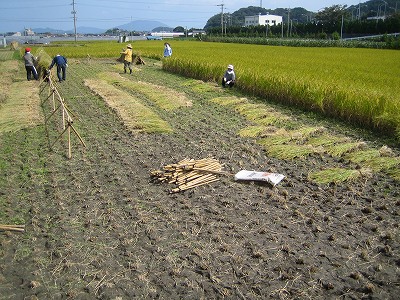 幼なじみがやっている無農薬水田。春に田植えをしたところが、稲刈りのシーズンです。今回で三回目の参加。鎌をもつ手も、ようやくサマになってきました息子も元気もりもり!田圃のあぜ道をハイハイしてまわってました。今回はTV局が稲刈りの様子を取材しにきていて、少し緊張・・・インタビューとかされてしまったし。はずかし。