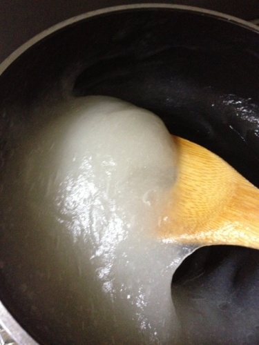 先週、街をぶらぶら歩いていたら、路面の園芸屋さんがあって、羽衣ジャスミンの鉢植えが 3つ¥1000お安くないですか!ワイヤーに巻かれてるけれど、高さが50cmある鉢物。洒落た園芸ショップなら1つ¥1500とかするよー。店員のお姉さんは「1つなら¥350」って言ってて迷ったけれど、、、(正直3つも多いので・・・)3つ買っちゃいました!。。。家に帰って大きめの鉢に、2つと1つに分けて植え替えてあんどんにツルを巻かせて・・・あんどんが隠れるくらい早く大きくなってほしい~あ、その前に花と香りを楽しみたいね。あの香りがたのしみというわけで今は花が咲くまで家の中に入れております。もうちょっと温かくなったら咲くかな?・・・・・・・・・・・・・・・・・・・・・・・・・・・・・・・・・・・・・・今日は、久しぶりに石鹸を作りました数年前に勢いついて、たくさん作ってしまったものが、気付けばあと1カ月くらいでなくなりそうな数になったので、先週オイルを注文。定番のオリーブオイルとパームオイル、ココナッツオイルに、ミックスされたオイルも買ってみました。これね。マカダミアナッツ油に、オリーブ油、ヤシ油、ワサビノキ油、パーム油、ひまし油が配合されてます。ワサビノキ油はモリンガ油とも言って、酸化しにくく保湿力も高くて肌なじみのいいオイルだそうです。今日はこのオイルミックスを使って仕込みました。計量しなくていいところはやっぱりラクです~苛性ソーダ水と合わせたところ。このあとブレンダーを使いましたが、トレース出るまでけっこう時間かかりました。でも、ま。30分くらいかな。米油の早いイメージが頭にあるので、15分超えると「長いな~」って思ってしまいますね・・・香りはパチュリ、ラベンダー、ゼラニウム、フランキンセンス、クラリセージ。そろそろ使い切ったほうがいいなっていう手元にあった精油ばかりをどばっと入れましたが、さすが。パチュリにすべてもっていかれた感じ(笑)パチュリは1mlもなかったのに。今でも家の中はパチュリむんむんです。型入れは、1つはオイルの効果を試したくてそのまま。もう1つはローズソルトとよもぎパウダーを入れました(シートタイプの型)。よもぎは、これまたあったので使いたくて。まさに草餅の色~ローズソルトは、型の表面(シートの底部)が細かいペイズリー調になっていてきれいに型だしできるようにと願いを込めて入れました。型だしが楽しみですあ~~~、そうそう。今回久しぶりの石鹸作りで、オイルは早々に注文して届いたものの、苛性ソーダと精製水をすっかり忘れておりまして。精製水はすぐに買えるけど、苛性ソーダの入手に苦労しました~。今の住まいに引越しして2年。近所に扱っている薬局が全然なくて、12,3軒ほど電話してやっと1軒の薬局にありました。しかも。それは。袋入り!!!!やー。過去に一度だけ袋入りを買ったことはあったんです。大昔。10年くらい前。でも、さすがに怖いし。不便だし。今は容器に入っているものに慣れていたので、やっぱりびっくりしました。でも他に扱っている薬局もないしで、買ってきました。しかも1袋500g入りでけっこう量があります・・・容器に移し替えて使っているけれど、移し替えるときは白い粉が舞い上がって、すごく嫌・・・マスクしてるけど。劇薬なら容器で販売してよー。ぷんぷん。しかも一人2袋までってそこの薬局では制限がありました。最近苛性ソーダの購入は厳しくなったのかな???ま。使い切れる分だけ買うけれど、容器の苛性ソーダ扱ってる薬局をやっぱり探そ。