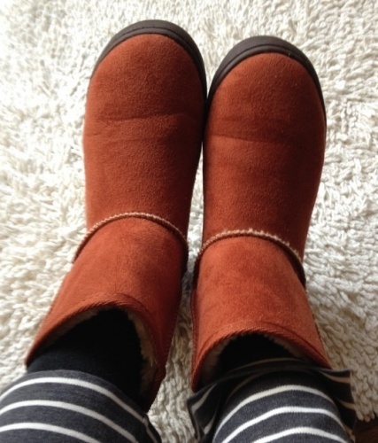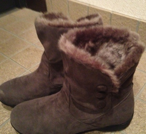 ショートブーツ買いました~ファーがついてぬっくぬく~ ファーはもちろんフェイクだけれど、足元だからね、気兼ねなくていい~^^♪折り返して履けるよ~昨日のお出かけに履いて行ったけれど、ほんとぽかぽかぬっくぬく~足も、体も!普段から‘くび’が付くところは弱いので冷やさないようにしてるけれど、‘足首’も然り!全身に血流がめぐっているようで冷えを感じることはなかったです。特に下半身が冷えやすい人にはほんとおすすめです。で。あまりにも気に入ったので、同じようなブーツをもう1足買って、自宅室内用にしようと思ってます。『外』で履く用に作られてるから、底がしっかりしてるしね~ルームシューズっぽいこの手のものは、底がすぐペタンコになるもんね。家でも立ってる時間、長いし。で安くて良さげなボアブーツがあったので購入でも、お品切れでお届けは11月下旬だって・・・寒いから早く欲しい~