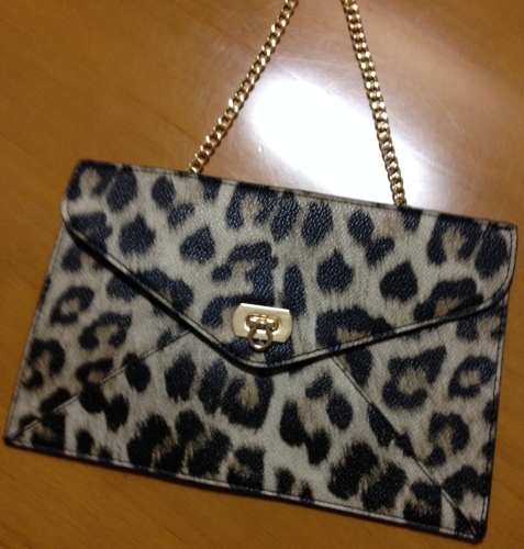 先日セールで買ったシャンパンゴールドのバッグ。その付属で付いていたヒョウ柄のポーチ?を今日染めてみました。・・・・染めるというと違うかな。塗料を塗ってました。ふふふヒョウ柄が大胆すぎて、私には使いにくくて処分しようと思っていたのですが、、、その柄がこれ。素材感のせいか柄のせいか、、、判断は人それぞれにおまかせ!付属品としては使いやすそうだったので、なんとか使いたいな~ってネット検索したら合皮にでも使える塗料があることを知って、おもしろそうなのでやってみました!塗ったあと~真っ黒です。使ったのは、これ。色は、赤とか金キラキンとかもあったのですが、無難に。余ったら旦那さんの靴とかカバンにも使えるかも~、という感じでブラックにしました。今日は晴れてて風もなかったので、ベランダに新聞敷いてシューッと。なかなか簡単に出来ました。薄くシューッと塗ったら乾燥させて、またシューッとの繰り返し。1回シューッとしたら5分くらいで乾燥するんだけれど、ベランダでじっと待ってられないし、部屋に戻って掃除機かけたり、買物に行ってしまったりして、放置。3,4回重ねたらしっかり黒く、ヒョウもいなくなりました。今はバッグに付いてます。こんな感じ。。。。もともとヒョウ柄の時からこうセットされてたの。チャームは別。あちゃー。なんかお祝儀(お香典とか?)入れみたいになっちゃったよ;;;ま、、、バッグに入れちゃってもいいんだし、、、ね