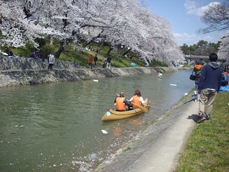 桜の花が満開ですね。 先日、岡崎市市民活動団体「街づくりコミュニティシンクタンク」様、「岡崎を良くし隊」様、そして、私が代表を務めさせていただく、岡崎市市民活動団体「ナチュラルセラピーネットワーク虹のたね」の皆様で、 川下り&お花見会を行いました。 昔は、岡崎城のたもとまで船が着き、城下町として、今よりももっとこのあたりは栄えていたということで、実際にやってみよう♪ということがこの企画の始まりです。 アメンボのようなカヌーを使って、岡崎城の近くまでスイスイとお花見客の視線を集めながら、私も、ヨロヨロと乗船、オールを使って漕いでみました。 岡崎良くし隊の隊長でもあり、一緒に、今春「ハーブとお酒」の街ゼミをコラボさせていただいた、BARエンジェルシェアーの本多さんに指導を受けながら、なんとか、帰岸することができました。 あぁ~~、落っこちないで良かった~~(ホッ) 普段、風景として見ている町並みも、違った視点で見ると新しい何かが見えてきます。 桜や川、自然の風景の目線に自分が一緒に溶け込んだような、素敵な時間でした。 また、夏に企画できたらいいな~。 ●岡崎市市民活動団体「ナチュラルセラピーネットワーク虹のたね」http://ameblo.jp/nijinotane-okazaki/●色と香り、ヒーリングのサンクチュアリ 香りの創造空間アロマヴェール http://www.h5.dion.ne.jp/~aroma.vl