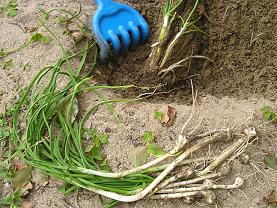 たまたまレジャーシートを敷いた場所に、ノビルがたくさん自生していました。