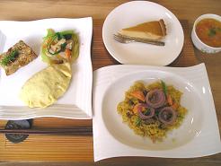・玄米と根菜のパエリア(紫玉ねぎはイカリング、ごぼうはムール貝?)