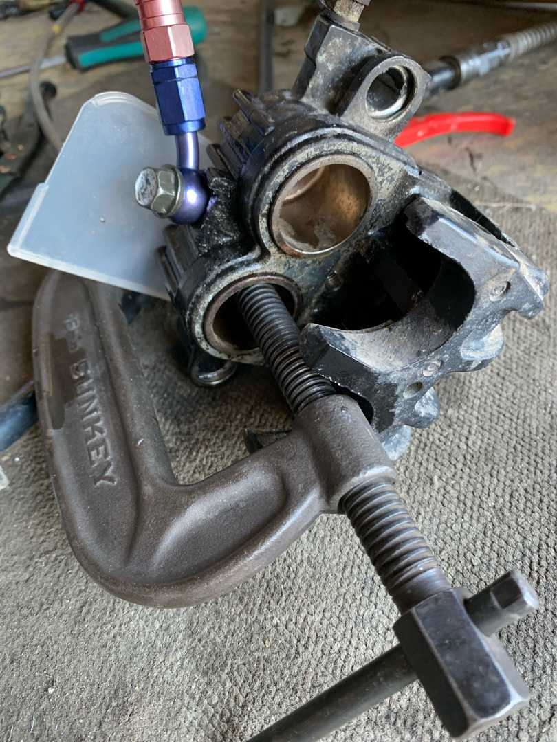 今日はキャリパー(ブレーキパッドの台座)が固着しちゃっているので