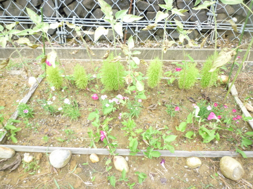 夏バージョン 今まで、マジマジ見たことはなかったのですが・・・ ひまわりって・・・こんな感じなの 夏休みの観察日記のようになっています ジニアの辺りに生えてきましたが・・・なんだろう 以前、義父が種を買ってきて私が撒いた まつばぼたんも咲いてきました きんせんか お盆用の切花にも間に合いそうで、よかったです