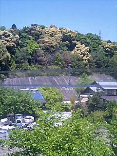 なんだか、その黄色の木が、緑の山から盛り上がったように見えます。