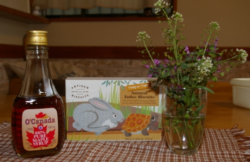 すっかり世話焼きになったヒメちゃん(2歳7ヶ月)なんでも ママのマネ ばあばのマネ (^。^;) 当然 ココくんモコくんのお世話もしたがります・・・ケージの扉を開けるときは そ~っと静かに開けるヾ(^ )ナデナデしたいときは ジッとして待っているおどろかさない おいかけない やさしくする d(^-^)ネ! このごろは ココモコの方から ツンツンしにきてお互い認め合う仲になりましたよヒメちゃんの手からも 小松菜を食べるココです (^。^)野菜を食べるココくん 最近ホント大人のうさぎさんなんです よね~今朝は 道ばたのお花を摘んでやってきたヒメちゃん自らコップに生けて 満足げ~ まんなかのうさぎとカメのパッケージはミミとパンダさんご紹介のアルティザンビスケットヒメちゃん 衝撃の一言「このうさぎさん ゼンゼンかわいくないね~」で パクパクッ「おいし~ね~」あっという間にカメさんも食べちゃいました!ありがちな味かなと思ったら メイプル味でイケましたよ~で 左のメイプルシロップはバンクーバー五輪記念に奮発カナダの味は けっこうお高め あっま~い香りみんなでホットケーキにはまりました