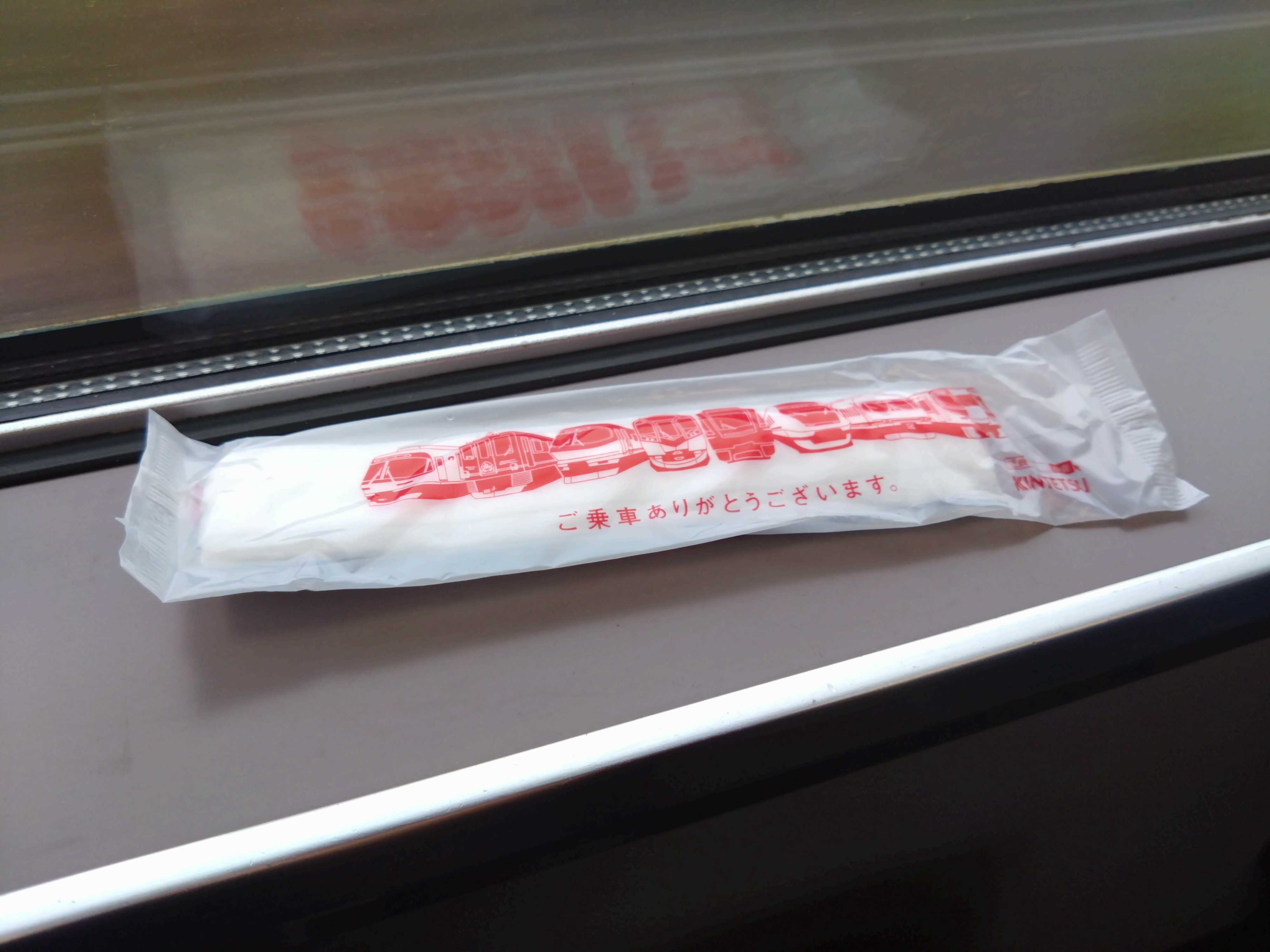 近鉄特急の洗面所に、あった。いいね、このおしぼり。
