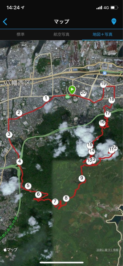 今日は、昨年からの反省とコンスタントな練習ジョグ、そして皿倉山を何回も登ることを目標に、皿倉半周行きました。
