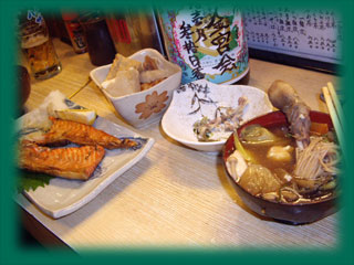 おでんが出て 紅鮭のハラミ 肴に金宮で一杯高橋君がスッポンだのカモだのおいしい話を語った途端に カウンターにスッポンが出て 鴨鍋料理が置かれたしかもサービス・・・こんな夜は二度とないだろう「車屋」実にいい店ですナ