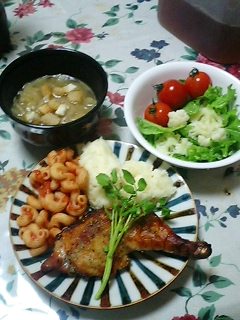 今夜のねーちゃんの力作です♪悲しいのはオニオンスープが・・・お味噌汁のお椀に入ってることスープ皿が、割れてしまってそのまんま~来年こそ! スープ皿を!!!でさ、まだまだ続くガクちゃん話夕方ごろからさ徐々に違和感何かって?腕と足の筋肉痛やっぱ、年よね情けない明日はもっと、痛くなるんだろうねぇやだやだ