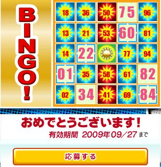 ++++++++++++++はずれ++++++++++++++++++++++++++++今日ポイントGETするのはそこのアナタ毎日5,000名にポイントが当たる楽天ブログラッキーくじは下のバナーをクリックinfoseekのラッキーサーチ 5Point Get!!!その外全滅なり…ビンゴは最低最悪でした。まあ、今日から始まったばかりだからねw
