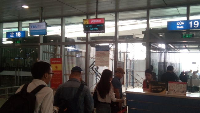 今回のハノイ行きは飛行機が8:30という早いのしか取れなかったので5時過ぎ起き。眠い。6時に家出て、いつものようにバス停まで1キロあまりの距離を歩く。。。。って、なんか田舎の人みたいね(*´艸`*)珍しく靴はいてきたら、歩くに連れてくるぶしソックスがずれて落ちてくる。一歩一歩歩く度に靴のへりが足首の後ろと擦れる。あぁ、やばいなぁ、これ。バス停までもつかなぁ。案の定、まだ道のりの半分くらいで痛くなる。普通に歩けない。どうやったらその部分に当たらずに痛くなく歩けるか、いろいろ試行錯誤しながら歩くもどうしてもびっこになる。結局最終的に辿り着いたのは、かかとを靴から出して、でもつぶさないようにかかと上げた状態で歩く方法。これでなんとか痛くないが、変な歩き方には変わりない。いつもの7割のスピードでしか歩けないし、疲れる(^_^;)まぁ、仕方ないっすが。あと10mでバス停!というところで、安い方と高い方と2路線両方のバスが目の前を通り過ぎる(ToT)普通に歩けたら乗れてたものを。。。それから10分以上待ってやっと来た安い方のバスは、いつもスカスカなのに今日に限って満席。座れん。ポケゴー出来ないじゃん。途中からやっと座れて、無事に空港到着。7時。時間は余裕。今回はベトジェットなので、セルフチェックイン機でチェックインしてすぐ中へ。中で絆創膏売ってるとこあるかと思って探したけど見つからず。そうだ!医務室だ!外に医務室があるのは知ってた。あそこに行けばよかった、ってのは後の祭り。中にはあるのか? 地図を見つけて探すも、無い。あーあ。仕方なくこのままハノイへ。搭乗口の外側は足場を掛けて工事中。周りの他の搭乗口は閉鎖されてる。このままで営業中。足場の上を作業員が歩いてく。このユルユル感がたまらんのお。そのうち物落としたり人落ちてきたりして誰か怪我したりするんだけど。飛行機はもう通路側の席しか空いてなかったので後ろの方の通路側。隣はベトナム人のおねーさん。このおねーさんが乗ってる間中、両側の肘掛けに肘を張って、こっちに肘が当たるのお構いなし。そのうちになぜか、こっちの肘掛けに体を預けてきて、おねーさんの腕と自分の腕がピッタリくっつくように。傍から見るとあたかもカップルかのように。そんなんでもなんにも気にしてないんだろうなぁ。ハノイのノイバイ空港に着いてから今日は、市内じゃなくてちょっと地方の町に行きます。まず、空港から路線バスに乗って、3キロほど先の長距離バスが通る道路まで行きます。そこからさらに、長距離バスが停まってくれるとこまでバイクタクシーで。ほんの1キロくらいなんだけどさ。そこでとうもろこし食べながらバスが来るのを待つ。ちょうどとうもろこしを食べ終わった後にバスが来て乗り込む。バスと言ってもマイクロバス。空いてたのが一番後ろの席だけで、狭い。後ろからは山積みの荷物が迫って来てるし。その状態で約1時間。このバスは、ワシらの目的地の街に行くわけじゃなく、もっと遠くまで行くので、降ろされたのは目的地の街に一番近い高速道路の上。そこから道なき斜面、と言っても乗り降りする人はみんなそこを利用するので、それなりに道が出来てる、を一般道路に降りる。降りたところはなんてことのない、近くに民家もないような高速道路の高架下の道なんだけど、そこをみんな利用するので、小型のタクシーが一台停まってた。ウチらの他に、もう一人降りた人がいて、一緒に街まで相乗りしてく。で、目的地に到着。ってことで、2時間弱の間に路線バス→バイクタクシー→長距離バス→タクシー相乗りと4つも交通手段を使って目的地に到着。ベトナムの地方への移動は大変だ。