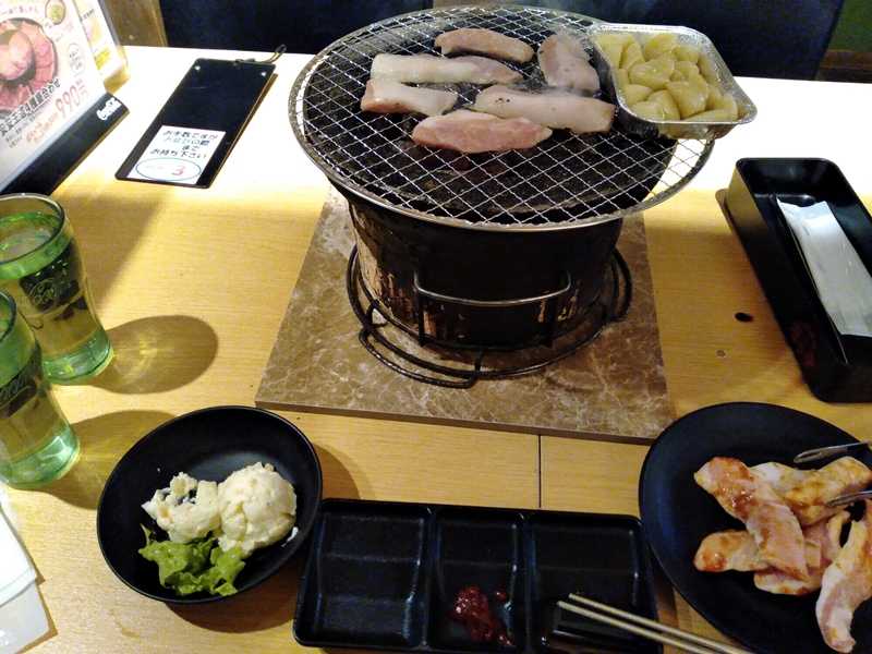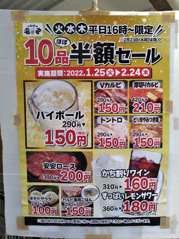 今日はベトナムでの表記にすると22022022(22/02/2022)という、真ん中で対称になる日なのでありました。20:02に写真を取ろうと思いながら、下記のイベントに行ってたので忘れてしまいました(^_^;)さて、3週に渡って開催されてるこちらのイベント、個人的な最終回に今日行ってきました。今までは水曜に行ってたんだけど、看板にもあるとおり、今週は水曜が休日のためにこのイベントは無し。で、木曜は最終日になるので、お客も多いかと思って、今日行ってきました。今までの経験から、カルビなどの牛肉はあんまり味がしなくて大しておいしくない。一番うまいのは豚トロ。ということで、豚トロ中心に、それにホルモンで攻めることにしました。それともう一つ改善点は、酒って飲まなくてもいいだろう、と。焼き肉するのに酒飲む必要ない。前回は5杯も飲んでしまって、偏頭痛の原因の濡れ衣を着せられた半額で提供のお酒、今回は飲まないでいきます。と、いうことで、イメージとしては、最初に豚トロx2、次にホルモン盛り合わせ、その後は行けるところまでまた豚トロ、というフォーメーションで行きます。前回までは娘と2人で来てたのだけど、今日は一人。さて、どこまで行けるか?まず豚トロを頼む。豚トロは味が、塩と味噌の2種類あるんだけど、今までは塩しか頼んでこなかった。今日は2ついっぺんに頼むので、片方味噌にしてみます。それと、ポテトサラダと、あとなんか頼もうかとメニュー見てたら、「そういえば最近頼んでないな。」と、目についてしまった、一人分には多い量のニンニクごま油。これでスタート。飲み物は水。注文が来るのを待ってる間にセルフのお水を取りに行きます。何度も取りに行かなくていいように、2杯いっぺんに。注文したものが来て、焼き始めまーす。豚トロ味噌は。。。うーん、味噌味が薄くて、結局タレにつけて食べるような有り様で、やっぱ塩の方がいいな。で、豚トロ食べながら、結構な量のニンニクを火鉢の端の方で温めて、いい感じになったのから食べていきます。豚トロx2を食べ終わって、ホルモン盛り合わせを頼む。が、今日のホルモンはなんかイマイチ。ミノなのかな?巨大なヤツがたくさんいて、これが“ホルモンな味”がしない。普通の丸腸とかがいいのにな。と、いうことで、ホルモンをやっとこ食べ終わったところでお腹はいっぱい。いつもは2人で食べてたの、一人で食べてるんだもんな。ここで終わりでいいんだけど、ホルモンがイマイチだったのと、今日が最後だし、豚トロもう一回食べとくか、ということで、豚トロ塩をもう一度頼む。来た。焼く。塩をして口に運ぶ。うーん、豚トロならまだ行ける(かも)と期待したんだけど、ダメだ。うまく感じない。今まで感じもしなかった、豚トロの濃い油の味しかしない。塩味も相まって、なんか、マーガリンをそのまま食べてるみたい。ホント、ちょうどそんな感覚。全然うまく感じない。。。失敗だった。まぁ、しゃあない。お会計は1500円。ワシ、楽天モバイル契約したこととかで楽天ポイントを結構持ってる。が、ここのお店なんかは、“楽天Payは使えるが、楽天ポイントは使えない”。こういう店は結構ある。「Pay使うとポイント貯まります!」って言っておきながら、そのポイントは使わせないとはどういうことだ?と思ってたのだが、ふと思いついて、楽天Payのアプリを落としてみると、どうやら“Pay上でポイントを使う”は出来るよう。なんだよ、その複雑なカラクリは?こんなのついて行けないよ。と、言うことで、恐る恐る楽天Payで払ってみたところ。。。無事にポイントで引かれてる。今日のお会計はタダ。こうすればいいわけね。難しいね、ペイは。