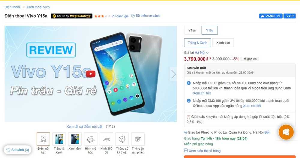 昨年までベトナムにいた間は、“1年毎にスマホを買い替える”のを基本にしてた。実際には、1年経ったら買い替え対象を探し始めて、気に入ったのがあったら買うので、でもまぁ、1年半以内には買い替えてた。私の買う対象のスマホの金額は「3百万丼まで」と決めてて、その範囲で希望の最低スペックを上回るのの中で決めてた。3百万丼=1万5千円くらいですね。今使ってるスマホは去年の1年経った頃には街がロックダウンしてて買えず、そのまま日本に戻ってきてしまって、今では2年近く使ってる。デカくて重いので、そこが不満だった。そして、常駐アプリが多いんだか、メモリの管理が悪くてムダにたくさん使ってるんだかわかんないけど、常にメモリが80%超え使われてておかげで処理が止まって固まることが多く、ちょっと閉口してて、買い替えたかった。今回やっとハノイに来れたので、この機会にスマホも新しくしよう、と。今回の個人的最小スペックはRAM 4GB以上。前のやつが3GBでダメだったので。とはいえ、その前に使ってたシャオミも3GBで、それは普通だったので、今のやつがことさらにメモリのハンドリングが悪いんだとは思うけど、かといってこれでまた3GBのを買って動きが悪くて後悔するとイヤなので、4GBにしといた。そして、順調に物価が上がっているベトナムでは今や3百万丼ではそんなスペックのスマホは買えないので、値段も4百万丼までに上げた。以前は3百万丼まででもSnapdragonの入ってるのが買えたのだが、今では4百万丼でもSnapdragonが入ってるのはないので、そこはあきらめてみた。で、そんな中で吟味して決めたのがこちら。CPUはMediaTekのHelioP35の8コア。ちょっと心配ではあるけれど、RAM4GBなのでなんとかなるか?っつか、4百万丼以下だとこのくらいのしか選べないので、これで試してみる。今回はVivo。スマホのメーカーなんてそういくつもないのに毎回違うなぁ(^_^;)値段は画像にあるとおり3790千丼。(日記を書くのに今見たら200千丼下がってた。 △1000円。嗚呼。)買うのはいつものとおりてーぞいじーどん(Thế Giới Di Động)で。家に届けてもくれるんだけど、店に行ってアクティベートしてもらった方がなにかと問題も起きないので、そうする。そして、画像にも書いてあるのだが、Grabの電子マネーmocaで支払うと5%引き、と。5%というと1000円近くになるのでこれは使いたいのだが、そのためにはmocaに一旦この代金3790千丼以上を入れないといけない。もしそれで決済がうまくいかないと(ベトナムあるある)、その金がmocaの中に残ってしまう。mocaなんてGrabの決済にしか使わないので、Grabバイクに使うのが1回5万丼とか。4000千丼とか入れたら永久に使い終わらないお金がムダに入ってることになってしまう(^_^;)なので、怖くてやってみれない。ということで、残念だけど5%割り引きはあきらめて、お店で払うことにする。取りに行くお店を一番近所のお店がどこか調べながら決めて。。。ってやりながら思った。 っつーか、割り引く使わんでお店で払うなら別にネットで予約することもない。お店の一覧で各お店に在庫があるかどうかわかるので、在庫があるお店に特に予約もせずに行けばいい。とか思ってたら、なぜか予約が完了してしまいました。まぁ、いいけど(^_^;)で、ATMでお金を下ろしてお店に行く。てーぞいじーどんは電話機専門店なのだが、お店に来てみるとここはでぃえんまいさいんという、同じ会社がやってる家電店。スマホはその中の一角で売ってる形。予約完了のお知らせはSMSで来てるので、相変わらず足採用でキレイなお御足の女子ばっかいるお店に入ってそれ見せながら、「スマホ購入の予約してまーす」というと、中の方のカウンターに連れてかれる。で、スマホを持ってくる。開けて中を確認。おねーさんに「アクティベートするか?」と訊かれるので、してもらう。スマホの画面のカバーのビニールを剥がして電源を入れる。 と、そこで渡される。えっ、こっちでやるの?まぁ、ぐ~ぐるのログインとかあるからなぁ、などど思いながらやってると、「これでSIM入れ替えて。」と、買ったスマホの箱の中から取り出したSIM出すピンを渡される。えっ?こういうの、お店にピンがあるんじゃないの?わざわざそっから出す?何やかややってるうちにこれ無くなっちゃったらイヤだよ。んで、客が自分でやるの? っつか、カウンターのお客側にはいろんな商品が陳列されてて、SIMのトレイ置く場所にも困る。えぇ、ちょっと待ってよー。SIMとかマイクロSDとか落として失くしちゃいそうで怖いんですけどー。電話機専門店だと、めっちゃ慣れたスタッフが全部やってくれるのになぁ。これなら家に帰ってから自分でやってもおんなじや。自分でSIM入れて設定してると、おねーさんがベンチ型の椅子の自分の隣りに座って、自分の(お店の手続きする)スマホ見せながら「保証が1年間ついてて」とか説明してくれるので、必要以上にくっついて聞く。その後も自分でちゃんと動作するの確認