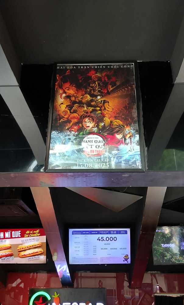 竈門炭治郎の映画の新作、ベトナムでも先日から公開されまして。各映画館チェーンのサイトでの情報では8月15日(金)から、ということだったのですが、情報をチェックしてたらどうやら13日から一部フライングで(?)始まったようです。この国で上映される映画は、人気がないと平気で1週間、2週間で打ち切りになってしまうので、観たい映画はやってるのを確認したらすぐに観ておく必要がある。竈門炭治郎くんはこの国でどのくらい人気があるのかわかりませんが、この国ではR-16に指定されている。あんだけ血がドバドバ出て、首が切られまくるんじゃ当然とも言えますが。むしろ日本の規制ユルすぎないか?と。うちのツレも気持ち悪いと言ってたし。ということで、日本のようにキッズが観に行く状況にはないので、人気は限られていると思われます。なので、公開になったらすぐに観に行こうと。さっさと15日の仕事帰り、もしくはその後の土日のうちに観に行こう、と。で、結局、15日は仕事終わったらもう観に行く気にはなれず。155分もあるので、仕事終わってから観に行ったら21時になってしまう。やっぱオッチャンにはそんな元気ありまへんでした。で、この週末に観に行くのだけれど、“映画観るだけで1日使ってしまった”という事態を避けるため、朝の回を観に行こうと。7:30というのと8:45というのがそれぞれ別の映画館であったので、どっちかにしよう、と。が、土曜日は結局行く気になれず。で、“来週末には終わちゃってるかもしれないぞ。”と自分に言い聞かせて、観に行くことにしました。ここ最近の毎日の生活リズムのとおり、昨日も夜飯を食べ終わったら眠くなってしまいそのまま寝ちゃって夜中に目が覚める。2時半に目が覚めて、“眠くなるまで起きてよう”と思ってたらそのまま朝になっちゃって、さて、7:30を観に行くか? この状態で行って途中で寝落ちしちゃわないか?まぁでも、それでもとりあえず今のところまだ眠くないから行っちゃおう!事前にチケットを買う。 ベトナムは映画館チェーンによってだいぶ値段が違うんだけど、ここは普通は8万丼なんだが、朝の回は早朝割引かなんか知らんけど4万5千丼。250円くらい。安い(・∀・)と、いうことで無事にオンラインでチケットを入手して7時に出発。Grabバイクで順調に到着して、開場を待つ。チケット買ってQRコード送られてきたんだけど、以前、そうやって買ったのに映画館でもう一度窓口でそれをチケットに変換しなきゃならないことがあったので、ちょっと心配しながらも、そのまま待つ。この国の映画のスケジュールに書いてある時間は、始まる時間じゃなくて開場の時間。なので、7時半キッカリに入れるようになり、無事そのQRコードで入場。映画の方ですが、まぁ普通におもしろい。このクオリティのアニメを作れるのはさすがに日本しかないのではないか?しかし、2時間半は長い。。。飽きるとか眠たくなるとかではなく、単純に途中でトイレに行きたくなってだんだん映画に集中できなくなってくる。出来るだけ体を動かさないようにして、尿意が増さないように努力する。映画館は寒いことが多いので、いつもは裸足にクロックスなのに、今日は靴下履いて靴履いて直近水飲まないように注意して事前にトイレにも何回も行って臨んだのにそれでもダメだった。途中トイレ休憩ほしい。この辺が劇場で映画観ることのデメリットなんだよなぁ。決められた時間に行かなきゃならないし、途中でトイレ行っても寝落ちしちゃっても見直すことが出来ない。この物語、ちょくちょく昔話が挟まれる、よく鬼がなんで鬼になったかのエピソードが挟まれるが、今回も猗窩座のエピソードが長すぎ。全くなくすわけにはいかないんだろうけど、そこは3分の1くらいの長さにして、2時間ちょっとくらいに収めてほしかったよ。にしてもこのアニメ、原作の漫画でもこれだけの迫力が感じられるのだろうか?漫画でこれはちょっと無理なんじゃないか、アクション物はアニメにするのにすごいメリットがあるな、と思わされる。このテの映画でこの長さだと、観終わったあとにガックリと疲れる。でも、終わって劇場から出てもまだ朝の10時。普段だったらやっと行動開始するかまだしないかくらいの時間。休日を犠牲にすることなく、この長さの映画を観ることが出来たのでした。もう一度観たくなくはないけど、も一度わざわざ劇場に来て2時間半は苦痛だ。家で見れるようになったら見よう。
