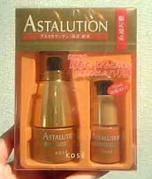 限定品…はいぃ…何度もぉ言うようですがぁ、その言葉にぃ弱々なのはぁ私でっす( ̄∇ ̄*)ゞエヘヘ♪しか~もぉ、それってぇ食べ物だけじゃなくてぇ、他の物にもぉなんですよぉ…(*゜~゜*)あぁ、物欲の神様ったらぁ…( ´゚д゚)(゚д゚` )ネーでぇ、今回惹かれちゃったのがぁコスメのぉ限定品☆KOSEから出ているぅ『ASTALUTION』!何かというとぉ、目元口元のぉシワ伸ばしらしいでっすw(*゜o゜*)wまだぁ私の年令だとぉ関係ない気もするんだけどぉ、TVでぇ17歳からぁ今の子はぁお肌の曲り角ってぇ言うのを聞いてぇΣ(・∀・;)ってことはぁ、私はぁ曲がっちゃってぇ、もう何年!?Σ(゚д゚lll)ガーンって事だしぃ…あと私ってぇ肌が弱々なのにぃ、キレイにぃなるためにぃ毎日化粧バリバリにぃ描き込んでるんですよぉ(*^^*)そうするとぉ、お肌ってぇシワとか寄りやすくなるらしくってぇ(゜ロ゜;エェッ!?またまたぁΣ('□'*('□'*('□'*('□'*)ガビーン!!早めにぃ手は打つべきでしょ~(* ̄0 ̄*)ノ ってことでぇ恒例のぉドラッグストア巡りをしていてぇ見付けたんですよぉ☆今ならぁ、もう一本小さいボトルも付いていてぇ、値段は一本分w(゜o゜*)w※ドラッグストアによってはぁ割引ありありぃヾ(*´∀`*)ノ♪これはぁ買いでしょお♪ってことでぇ(σ・∀・)σゲッツ!!中身はぁボトルと同じようなぁオレンジの液体だけどぉ香りはなし☆私、コスメとかにぃ香りがあるとぉ、それだけでぇ酔っちゃったりもぉするからぁ(゜ー゜;AアセアセVIVA無臭(* ̄0 ̄)/ これをぉ顔を洗った後にぃ目元口元にぃたっ~ぷりぬりぬりぃ~☆被れたらぁどうしよう…o(б_б;oドキドキとかぁ毎度新製品では思うんだけどぉ、思い切って使いまくりましたぁ(⌒^⌒)bでぇ一ヶ月以上使っているけどぉ、痒くなったりぃ被れたりもないしぃw(*゜o゜*)w疲れてぇちょっとぉ目元がぁ痩せちゃった感じの日にはぁ、化粧下地とかにしてぇぬりぬりしておくとぉ、痩せてる感じがぁ治るみたいぃ(^ー゜)ノヤッタ♪友人のぉ姉さんにもぉプレゼントしたんだけどぉ、姉さんはぁ30越えているけどぉ、今まで笑いジワがぁちょい気になっていたらしいけどぉ、少し減ったかも…ってぇ言ってましたぁ…(ノ´▽`)ノオオオオッ♪私もぉ今からやっていたらぁ、三十路越えてもぉプルプル美肌でぇいけるかなぁ(*/∇\*)キャ♪な~んて思ってまっす( ̄∇ ̄*)ゞエヘヘ♪5月末までキャンペーンらしいからぁ、シワてかぁ気になる人にはぁ良いかもですよ~(o ̄∀ ̄)ノ”↓↓ちょっと欲しいなぁ…ってぇ思った人はぁどぞ~o(*'▽'*)/