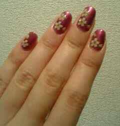 いよいよぉ世の中的にはぁGWに突入ですね~☆私のぉ仕事はぁあまりカレンダーとはぁ関係ないからぁ、普通にぃ土日休みだけですぅ。.゜.(ノ∀`).゜.。でもぉ他の時にぃ取れるからぁ、混んでる時にぃ休みよりもぉいいかなぁ…(∀`*ゞ)♪ってぇちょっと強がってみてますぅ…(゜ー゜;Aアセアセそれでぇ桜はぁもう都内はぁ終わっちゃったけどぉ、でもぉ桜がぁやっぱりぃすきでぇ、春気分でぇいたいからぁ、ネイルだけでもぉ、まだまだ桜ネイルしちゃいましたぁ♪ちなみにぃ今回のネイルはぁ、ベース:CANMAKE Nail Polish(カラーNo.40)300円 CANMAKE Nail Polish(カラーNo.12)300円ネイルシール:bibi deco さくら388円トップコート:100円均友達がぁ最近着付けの教室にぃ通い始めてぇ、その着付けの練習台になってますぅv(*'-^*)それでぇ着物にぃ合う感じのぉ、和柄的桜ネイルにぃしてみましたぁ♪イメージはぁ着物のぉすそ模様でっす(´ー*`)♪どうでしょう?ヾ(*´∀`*)ノこれでぇ今年のぉ桜ネイルはLASTでっす(゜-^v)♪↓一緒にぃLAST桜したい人はぁどうぞd(・・〃)