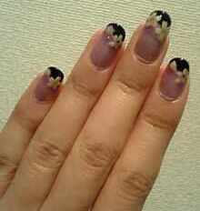 と言ってもぉ…もう1週間ぐらいこのネイルになっているのだけどぉ(*^.^*)エヘッ♪この間のぉ週末にぃ40時間耐久お花見大会に行ってきたぁ…って話をブログにもぉ書いたでしょぉ'`ァ,、ァ(*´Д`*)'`ァ,、ァ※知らない人はぁ…この間の週末のブログを見てくださいねぇ(笑)それでぇ夜桜もぉ昼間の桜もぉすごくキレイだったからぁヽ(・∀・ )ノそれをぉイメージしてぇ…それでぇネイルアートしてみましたぁ(o ̄∀ ̄)ノ”ちなみにぃ今回のネイルはぁ、ベース:ELSIA(カラーNo.PU104)350円 CANMAKE Nail Polish(カラーNo.40)300円 KATE(カラーNo.PU-10)300円ネイルシール:BN サクラピンク399円トップコート:100円均今回のはぁネイルシールとかはぁこの間の使いまわしなんだけどぉ、ベースカラーにちょっと凝ってみたのぉ(∀`*ゞ)エヘヘ♪はじめはぁピンク塗ってぇ、それで先だけを黒で斜めに入れてぇ、境目にぃ桜のネイルシール貼ったんだけどぉ…。。。o(゜^ ゜)ウーン…なんか境目が変?(・・。)ん?って思ってぇ…それでぇ桜の周りをぉちょっとだけぇキラキラしたぁ紫ラメ入りのぉマニキュアで塗ったらぁ、なんだかちょっぴりぃ和チックになってぇ☆自分的にぃΣb( `・ω・´)グッ♪って感じぃ( ̄∇ ̄*)ゞエヘヘ♪都内はぁ桜がぁもう葉桜になってきてるけどぉ…私の中はぁ…まだまだ満開ですよぉ(o ̄∀ ̄)ノ