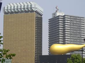 都内には、有名建築家さんの手になるユニークな建物が数多くあります。なかでも、誰もが思わず写真をとりたくなるのは、これでしょう!フランスの方がデザインしたそうです。炎のオブジェということですが・・・どう見ても、アレにしか見えない(爆)。まあ、これをなんと見るか?見る人の心に任せるといたしましょう。お隣のアサヒビール吾妻橋ビル。こちらは、ビールのジョッキをイメージしてるのです。てっぺんに泡もたって、わかりやすいですね!本日19日、銀座で約束があったので、その前に浅草によってみました。そうです!今日は三社祭の真っ最中。これからしばらく浅草特集と参ります!