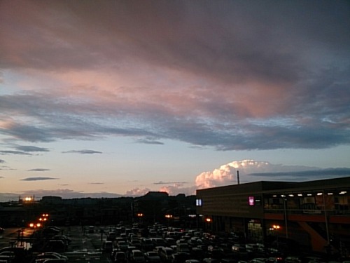 ショッピンクセンター二階からの夕方の様子です 天気が不安定で、昼間、何度か、急に雨が降ったようです そのせいで、空気が澄んでいたのでしょう 夕焼けがきれいに見えました 毎日、こういう空が見られる様に、いろいろな方面に頑張らないと 与えられた時間を大切にです *・゜゚・*:.。..。.:*・'(*゚▽゚*)'・*:.。. .。.:*・゜゚・* ◆ 引用 ◆ 幸せな人生には2種類のメガネが必要です ひとつは 人生の目標を眺めるための遠メガネ もうひとつは 日々の小さな喜びを見落とさないための虫メガネ