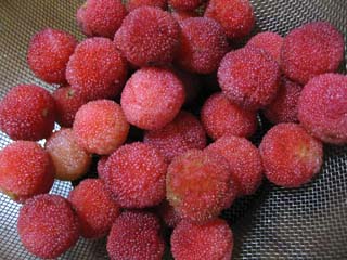 今日は、里山のお隣さんからヤマモモを頂きました。実は私はヤマモモを食べるのが初めてです。お土産のジャムは食べたことがありますが、生食は初めてです。さっそく食べてみました。 果実は2cmほどの球形で、甘酸っぱくて果汁もたっぷり..何となく懐かしい感じがしました。初めて食べるのに、懐かしい..とは田舎者なんでしょうか。生食の他に砂糖漬けや焼酎漬け、ジュースでもいけるそうですが、せっかくですので生食で頂くことにします。 ヤマモモの木の樹皮は、「楊梅皮(ようばいひ)」といって、下痢止めや腰痛などにも効くそうです。この種を我が里山に植えて、実が出来るかどうか試してみようと思います。「ポチッ」と応援お願いします。