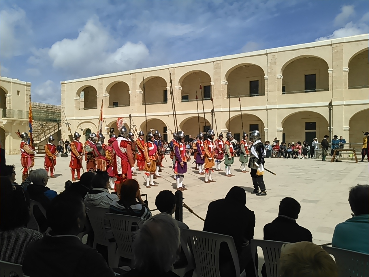 その後、ヴァレッタの北の端にあるエルモ砦で騎士団の軍事演習を再現したインガーディアを見学しました。