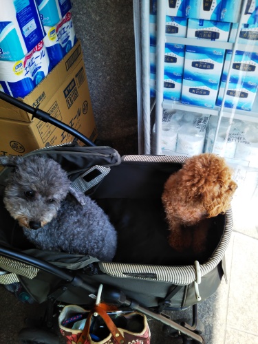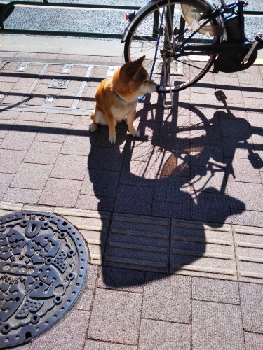 スーパーのエントランスは柴犬スポット オレンジのウェアが春めいている🐕ふわふわしっぽがチャームポイント。今夜は、スポーツクラブの帰り通りすがりの公園で、連れていた柴犬に脱走されて右往左往する飼い主に遭遇した。じっとしてられないたちらしくてリードを話しちゃった?🐾元気良すぎるの飼い主泣かせか。