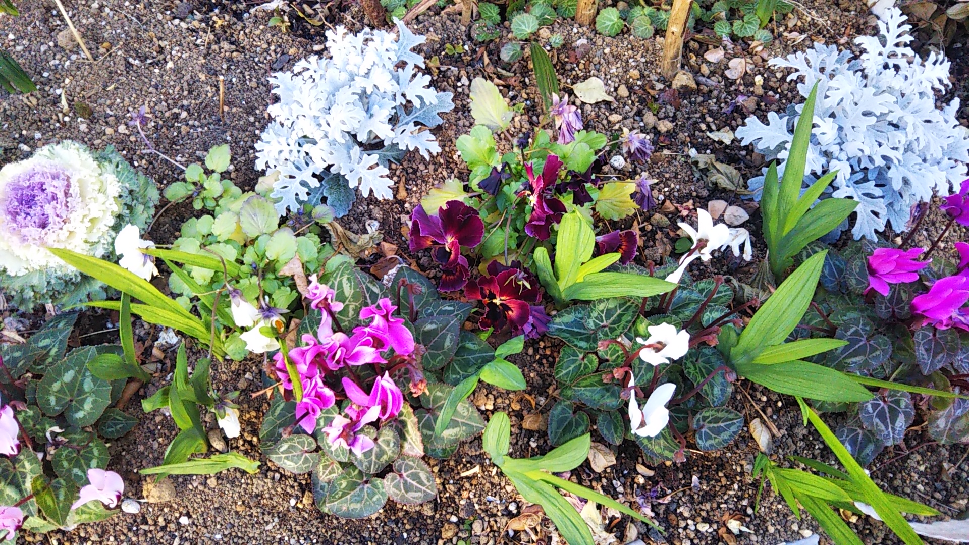それどころから、暦のうえではとっくに春と何度も言っているのに寒い。だけど花は咲く。図書館へ行く道にある小さな花ばかりの花壇。小さい春みつけた。