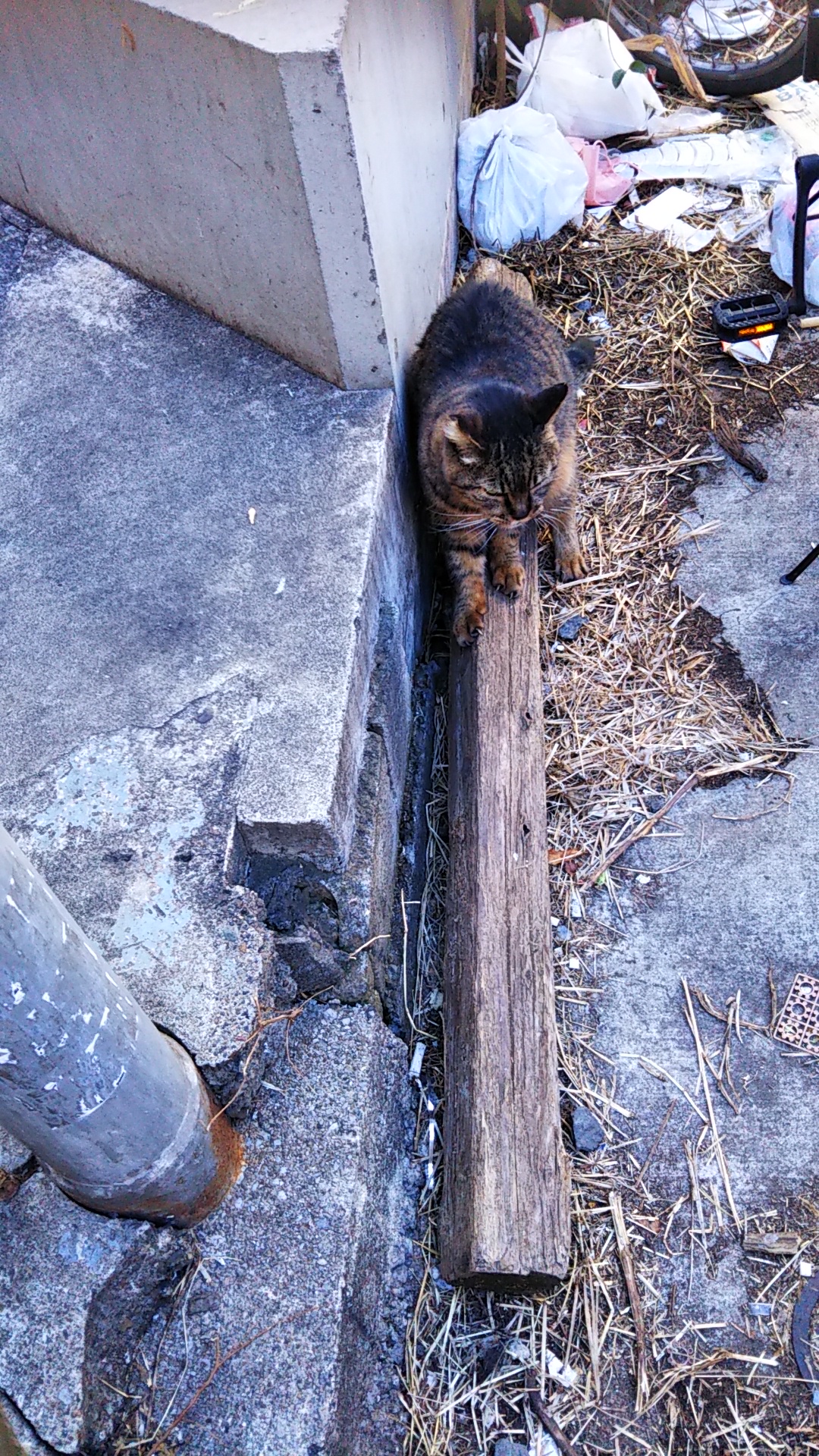 少しだけ暖かさを感じた今朝あまりにもご無沙汰だったキジトラに逢えた。だけど不法投棄のゴミのだらけの背景とは。このとっ散らかり具合、どうよ。そのせいかなーんとなく、ご機嫌斜めで素っ気ない。やだなー人間のやることは(=^・・^=)