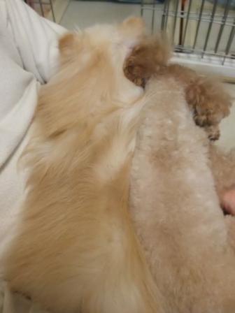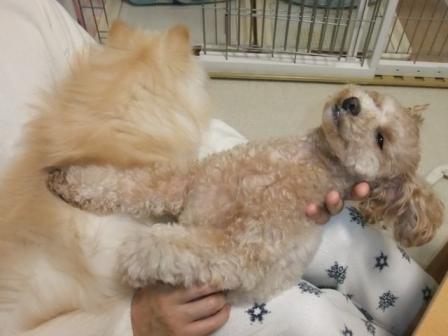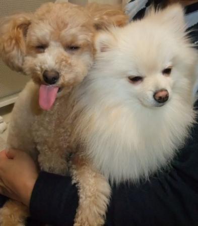 今日は、むうむぱぱ&ままの結婚記念日です。入籍した日と結婚式をした日が違うので、記念日が2回あります♪そして、今日は、先住犬あすかの命日でもあります。もう2年経ちました・・・2年前は雪が降っていました。今日も夕方から降っています。3年前の結婚式の日は快晴でした。(今考えると、ラッキーだったなぁ・・・)今日、るうなはトリミングDay♪スカイツリーのように撮ってみました!?(笑)リボンも相変わらず可愛いです♪そしてその後、2ワンは(月1イベントの)病院に行ってきました。むうむ 2.14キロるうな 2.75キロむうむは増えて、るうなは減っていました。昨日の朝、むうむはゴミ箱漁りをして(汗)その後定期的に吐いているので念のためレントゲンで胃と腸を見てもらいましたが、異常なしでした。家に帰ってから、お気に入りの座イスの上で粗相したので、見事に座イスはゴミ捨て場行きとなりました。自分で座イスをゴミにしちゃったね~残念!朝恒例のパパのヒザの上の2ワン♪気持ち良さそう!?いつのまにか場所が入れ替わってる!?るうな、トリミング前なのでモシャモシャです(汗)夜の2ワン・・相変わらずヒザの上にいるるうなと、ちゅうちゅうしているむうむ。ランキングに参加しています。応援ポチお願いします♪いつもありがとうございます。