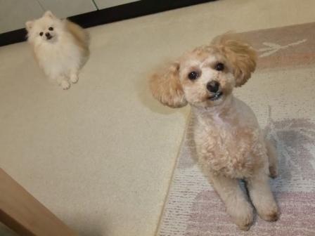 今月も届きました。雑誌「いぬのきもち」犬種別に、散歩の目安時間が載っています。ポメラニアン20~30分トイプードル40~50分しかも「一日2回は行きましょう」って(汗)こういう記事を読むと、やっぱり散歩させてあげたいなぁって思います・・でも、今は我慢!暖かくなったらパパに夜がんばってもらおう~!?(笑)オヤツ待ち♪我慢できなくて回っているむうむと、フセしてるるうな。こうすると、手が長く見えるのはなぜかなぁ?今日のペロペロ♪ランキングに参加しています。応援ポチお願いします♪にほんブログ村人気ブログランキングへいつもありがとうございます。