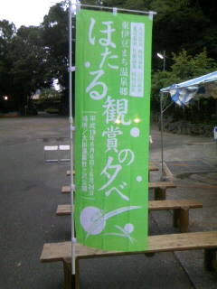 「ほたる観賞に夕べ」は、本日(6/24)で終了いたしました。最終日は、生憎の雨で中止となりましたが、今年は空梅雨のおかげで雨の日が少なく天候に恵まれ、大勢のお客様が楽しまれました。来年は、「奈良本けやき公園」とこの「ほたる観賞の夕べ」と2箇所で観ることが出来ます、期間も5月下旬から6月下旬まで楽しめるようになると思います。