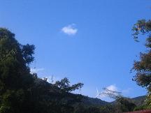 こんにちは。水曜日担当のしんのすけ侍です。今日は、すっきり澄み渡った気持ち良いお天気で、空、海の青さと山の緑(この辺は紅葉がないのです。)がくっきりと鮮やかに描写されております。あたりの景色を見回すと山の頂に白い風車がいつの間にか、数基設置されているのが確認できました。現在、この熱川のずっと山の上に10基の風車を組み立て中です。肉眼で確認するところには、3基が立ち上がって4基目を組み立て中でしょうか?予定では、今月中に10基が完成する?と聞いておりましたが‥‥幾分遅れているように見受けられます。風車までの道路も整備中で、完成の暁には景観すばらしい眺望の山頂近くまで車でも行くことができるようになって、海だけでなく山の自然も堪能できる大きな観光資源となることを期待してます。今現在どこまで車で行けるようになったかと途中まで上っていってみましたが‥‥結構時間かかりそうだったので断念。もっと時間に余裕のある次の機会にしました。温泉場から小さく見えますが、さすが近くで見る風車は迫力があります。立ち上がりの高さは約100m、羽(プロペラ)は1つ40mもあるそうです。山の写真は、太田の田んぼ付近から撮影してみました。