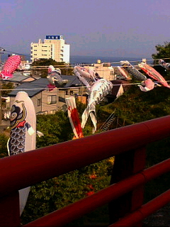今日4/16から熱川駅前に毎年恒例のこいのぼりが多数出現しました.これは毎年全国各地から使わなくなったこいのぼりを譲っていただき、熱川温泉旅館組合青年部の有志がこれをせいせいと熱川温泉の玄関口の熱川駅前で泳がせるものです.熱川温泉へお越しの際は是非駅前に足をお運びください.