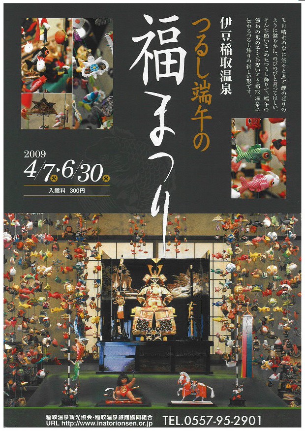 4/7より稲取温泉にて「つるし端午の福祭り」が開催されています.これはもともと1月から3月にかけての「雛のつるし飾り祭り」の男の子バージョンです.当熱川温泉からは約10分の距離でございます.