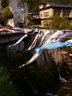 熱川温泉のこの季節の風物詩でございます鯉のぼりが元気に泳ぎはじめました.伊豆急の熱川駅前ですので電車でお越しのお客様はもちろん,お車でお越しのお客様も是非ご覧ください.