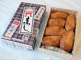 創業は昭和21年。稲荷寿しといえば伊東の「祇園」さんです。1946年、祇園寿司は伊東温泉で誕生しました。東京・浅草の映画街で弁士をやっていた守谷定一さんが終戦後、伊東の街で店を開いたのが始まりです。大変に歴史のあるお弁当屋さんです。伊東駅で「駅弁」として買うことができます。また2001年には、伊東のもう一つの玄関口である道の駅・伊東マリンタウンに出店し、自動車で伊豆に来るお客様にも贔屓にして頂いております。電車でもお車でお越しのお客様でもお買い求めいただけます。看板商品の「いなり寿し」 570円や「いなりのり巻詰合せ」 620円の他、すし飯に海老、鯛、鮭、桜エビ、れんこん、椎茸、栗等の乗った贅沢な上ちらし寿し「ぼんかま」1,000円も好評です。静岡県伊東市広野1-2-15 電話番号 0557-37-3366 祇園いなり寿し 570円