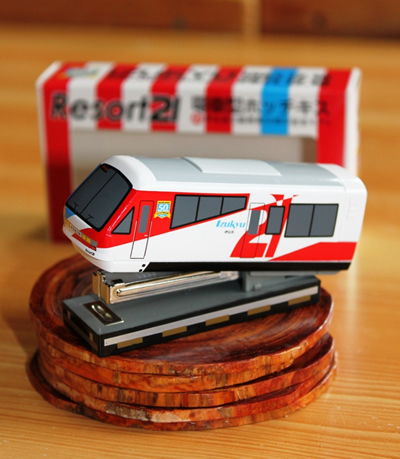 平成23年12月10日(土)に、伊豆急行線が開業してから50周年を迎えることを記念し、まもなく累計発売個数10,000個を超える、人気商品「リゾート21ホッチキス」の新バージョンと「伊豆急行線開業50周年記念オリジナルバッジセット」を発売します。インターネット販売もあります!また伊豆高原駅内のB1店舗「ポイント129」では、鉄道模型Nゲージ・HOゲージの大レイアウトがあり、伊豆急のリゾート21や100系電車、スーパービュー踊り子号などがデモ運転しています。小ジオラマレイアウトはお客様が自由に運転することができます。50周年オリジナルグッズの販売コーナーもご利用ください。レイアウトレンタル 車両持参の場合 30分 200円車両貸出の場合 30分 400円 開店時間 月曜日・土曜日・日曜日の10:00~17:00(天候等の都合により休業する場合があります)