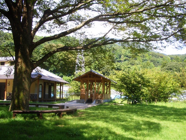 熱川の温泉場より車で5分少々山の手の方に向かうと、奈良本けやき公園があります。そのけやき公園に今年5月に足湯が完成しました!周囲は緑に囲まれ、温泉場にある足湯とはまた違った涼しげな趣き。ちなみに名称は「ほたるの足湯」。5月下旬から6月位には、もちろんほたるもご覧いただけまーす。