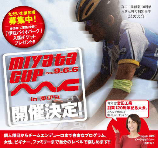 10月29日(土)毎年恒例のマウンテンバイクのイベント、メリダ・ミヤタカップが開催されます。25年目を迎える今年は新種目やパーティー、サイクリングツアーなども追加開催してパワーアップ!また、東日本大震災チャリティーイベントとし、リストバンド販売、試乗会の実施、そして参加者の走行距離に応じて義援金を寄付します。初心者でも安心して楽しめますので、ぜひ、ご家族やご友人とご参加ください。 エントリーはこちらから2009年のチラシです