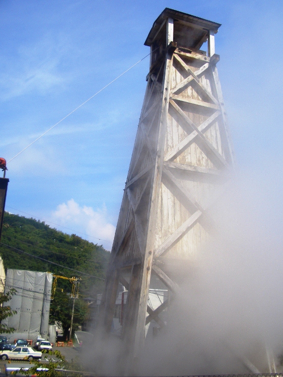 熱川温泉には、たくさんの温泉やぐらがたっています。建物の裏手や敷地内など、一般の方の目につきにくいところにあるものが多いですが、駅前や道路脇でもくもくと湯けむりをあげているものも・・・散歩がてらさがしてみてください。ちなみに駅前の浜田源泉では1日おきに源泉井の清掃を行います。これをさぼるといわゆる「湯の華」的なもので井戸自体がつまったりします。結構手間がかかるもんです。