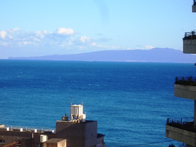 週末の雨は大変でしたが、おかげで空気がきれいに澄んで伊豆大島がとてもきれいです。元町の街並みまではっきりと見えて、いつもより近く感じます。