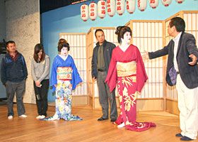 伊東温泉「お座敷文化大学」は12月11日(日)までです。期間:9月23日(金)~12月11日(日)の金・土・日曜日 ※平日を希望される方は、お問合せください。 会場:伊東温泉観光文化施設 東海館 芸事の真髄にふれて、日本文化の奥行きある「遊び」の精神を学んでみませんか? 芸者いき粋体験学部 入門課程・専門課程とも芸者姿でお楽しみいただけます。 ★入門課程「芸者姿体験コース(90分)」 お化粧、衣裳着付け、お茶、お菓子サービスなど気軽に芸者を楽しめます。 ★専門課程「お座敷お稽古1泊2日コース」 お化粧、衣裳着付けから、作法、芸妓文化講座、都々逸、踊りなど、芸者姿で芸事をしっかり学ぶ専門コースです。 詳しいことは:伊東温泉お座敷文化大学、お座敷文化大学の体験の様子をご覧ください。 予約・お問合せは:伊東観光協会 TEL0557-37-6105 FAX0557-37-6300また「三味線体験 in 東海館」は11月27日(日)までです。秋の和文化体験!伊東温泉「三味線体験 in 東海館」 和文化に親しみ、心を癒すひと時を! かつて、純和風木造三階建て温泉旅館であった観光文化施設「東海館」で日本の伝統楽器「三味線」の体験をしてみませんか? 三味線の講座を受けながら、伊東自然歴史案内人の説明による東海館見学、抹茶、和菓子のおもてなしなど2時間半の体験コースをお楽しみ下さい。期間:10月1日(土)~11月27日(日)の土・日・祝日 ※来年の1月29日(日)まで続きます。 時間:9時30分~12時 会場:伊東温泉観光文化施設 東海館 参加人数と料金:1日10名様(申込み順) 1名様2,000円(小学生以上) 詳細日程と申込みFAX用紙:こちらから→ 内容:真剣に習う本格的指導の三味線体験 をご覧ください。