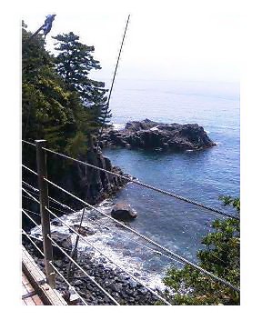 熱川温泉から伊東に向かう途中にお薦めの海岸線があります。まず城ケ崎海岸のつり橋を渡っていただき、その後伊東へ向かい約15分ほど、国道135号線ではなく、城ケ崎海岸沿いの旧道を進んでいただくと、川奈を過ぎてトンネルをくぐったところに汐吹公園があります。海の水が岩にあたりちょうど潮を勢いよく吹き上げる珍しい光景を運が良ければご覧いただけます。城ケ崎海岸のつり橋 汐吹公園