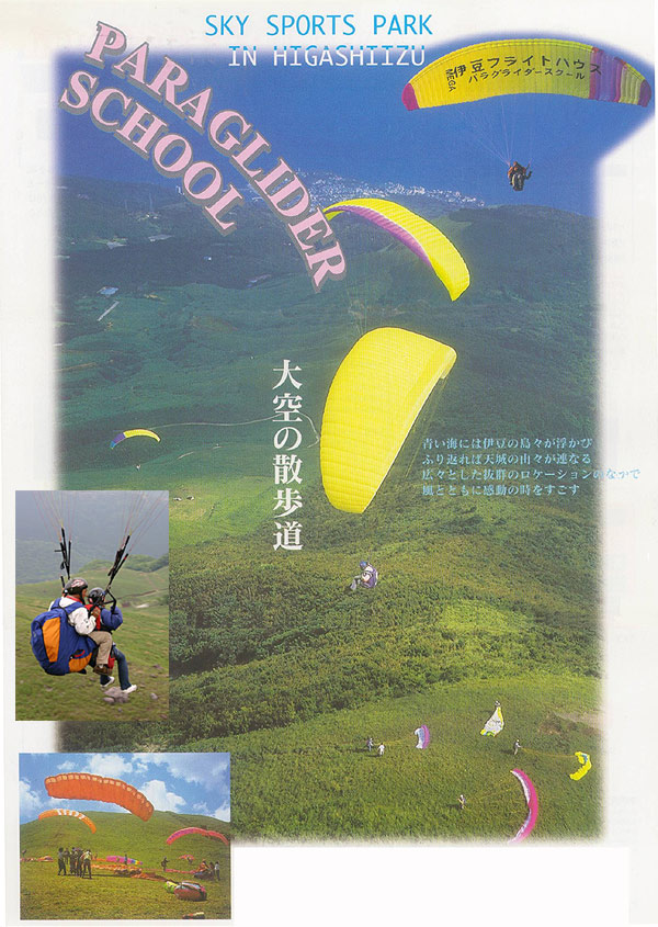 11/19(土)・20(日)パラグライダーフェスティバル IN 東伊豆2011が開催されます。■開催日 H23.11/19(土)・20(日) (※18日(金)公式練習)■お問い合せ 伊豆フライトハウス (0557-95-0220)■料金 10,000円(パーティー代含む)※キャンセル、競技不成立の場合でも参加費用の返却はいたしません。■主催 パラグライダーフェスティバルin東伊豆2010実行委員会■開催場所 東伊豆町稲取 三筋山 (稲取温泉)各クラスに分かれてパラグライダー技能を競い合います。詳しくはこちらのHPをご覧下さい