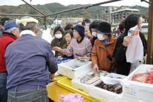 年末年始も開催!「港の朝市」: H23.12/29(木)~H24.1/3(火) 【8:00~12:00(正午)】 問合せ先: 東伊豆町役場(0557-95-1100) 内容: 地元で獲れた新鮮な海産物・農産物の販売や加工品の販売を行います。1月1日~3日までは会場内でおしるこの無料サービスも行われます。【イベント詳細ページへ】 場所は熱川温泉より車でも電車でも約10分の稲取温泉の漁港に面した東伊豆町役場内の駐車場です.