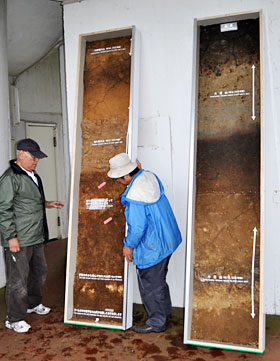 東海自動車は6月28日、小室山山頂に伊豆半島ジオパーク推進協議会から譲り受けた火山灰地層の標本ディスプレーを設置しました。富戸で発見された地層を標本にしたもので、伊豆東部火山群の4万年間の歴史を読み解くことができるというものです。伊豆半島ジオサイトの一つでもある小室山は、各火山の場所、火山が造った周辺の地形を実際に見ながら、火山群の成り立ちを観察することができる場所となりました。