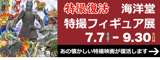 7月7日から天城ミュージアムで「特撮フィギュア展」が開催される予定です。今回の展覧会は、海洋堂主宰の展覧会です。お問い合わせは天城ミュージアム(0558-75-8000)まで。期間:7/7(土)~9/30(日)開催時間:10:00~17:00入場料:大人 500円 / 小学生 300円 / 小学生以下 無料会場:天城ミュージアム・休館日 毎週火曜日 (火曜日が祝日の場合は水曜休館)〒410-3206静岡県伊豆市湯ヶ島176-2 天城会館内 TEL : 0558-75-8000FAX : 0558-75-8008