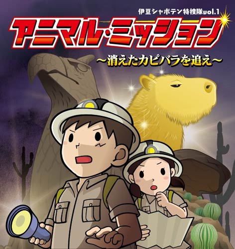 園内に隠された様々な指令をクリアして、楽しみながら学べる新アトラクションが7月14日からスタートします。親子や友達、カップルなど2~3人が1チームとなって、動物の生態を学んだり動物と触れ合ったりしながら指令をクリアし、消えた「黄金のカピバラ」を見つけ出す、ドラマチック体験型アトラクションです。開催日:2012年7月14日(土)スタート!開催時間:最終受付時間/営業時間終了の2時間前まで 開園時間/9:00~17:00料金:アトラクション参加料/1チーム1000円入園料/高校生以上1800円、小・中学生900円、幼児300円、3歳以下無料、70歳以上1300円 ※トワイライト営業時間(15:30以降)は上記の半額で入園可駐車場:200台(500円/1日)対象/小学生以上 所要時間/約2時間程度 ※雨の日も楽しめる全天候型アトラクションお問い合わせ先:伊豆シャボテン公園 TEL:0557-51-1111会場:伊豆シャボテン公園 -伊東市アクセス公共交通機関をご利用の場合JR熱海駅よりJR伊東線・伊豆急行線で伊豆高原駅へ、伊豆高原駅よりバスで約20分、「伊豆シャボテン公園」バス停下車お車でお出かけの場合東名沼津I.Cより国道1号・国道136号経由県道19号で宇佐美へ、国道135号で伊東経由伊豆シャボテン公園へ地図を開く住所 〒413-0231 伊東市富戸1317-13 TEL 0557-51-1111 FAX 0557-51-1118 Webサイト http://www.shaboten.co.jp/ 休園日 年中無休 開園時間 9:00~17:00 ※11月1日~2月末は16:00まで 駐車場 200台(500円/1日)